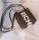 Tracolla in ecopelle, chiusura superiore con bottone, logo con patch applicato sul davanti e sul retro, piedini metallici sul fondo e placchetta in metallo con logo applicata frontalmente. Internamente presenta un unico scomparto. Dimensioni: 21x 23x8cm