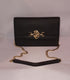 Borsa a tracolla nera realizzata in eco-pelle nera, dalla linea compatta, arricchita dal logo JR intrecciato a un motivo snake dorato. La chiusura è con bottone magnetico, mentre l'interno foderato è organizzato con una pratica tasca portatessere. La tracolla è strutturata con una catena dorata, che permette di indossarla sia a spalla che crossbody. Dimensioni: 22x5x13,5 cm.