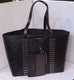 Shopping bag in ecopelle effetto vintage con borchie argentate applicate frontalmente di John Richmond. Non presenta chiusura, ma all'interno si trova una pochette borchiata fissata senza possibilità di sgancio ad uno dei manici per contenere al sicuro i nostri effetti personali. Logo serigrafato sia sulla borsa che sulla pochette. Dimensioni: 52x29x19cm