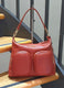 Borsa in pelle con due tasche organizzative anteriori e una posteriore tutte chiuse da zip. E' fornita di due tracolle in pelle, una per portarla a spalla e una per indossarla crossbody. Dimensioni 29x25x16cm